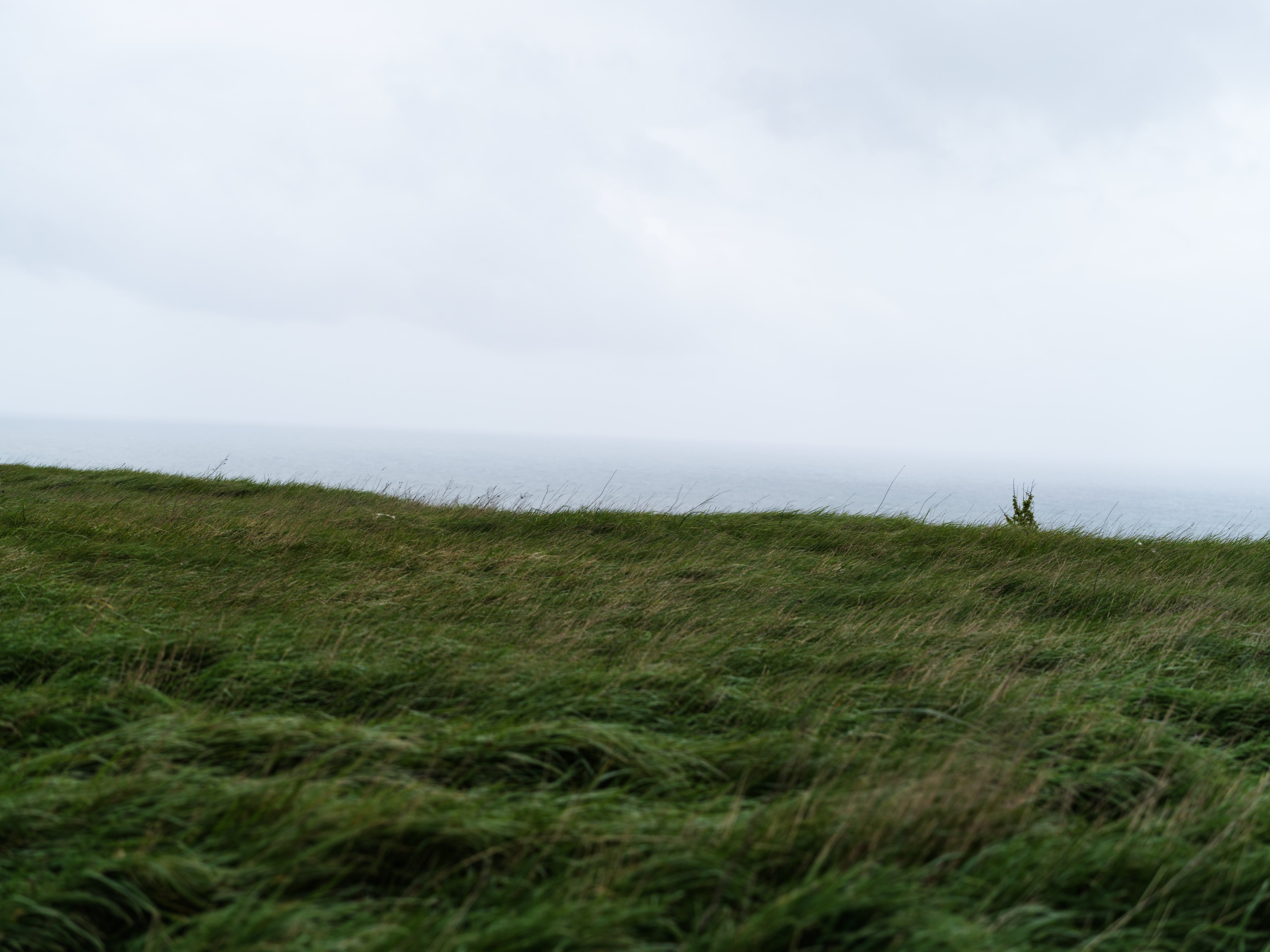 Revers de La matière du temps — ici le paysage est net, présent, précis. Un vert atlantique qui n'a rien de luxuriant : celui du vent, du ciel bas, de la côte bretonne en dehors des saisons.
