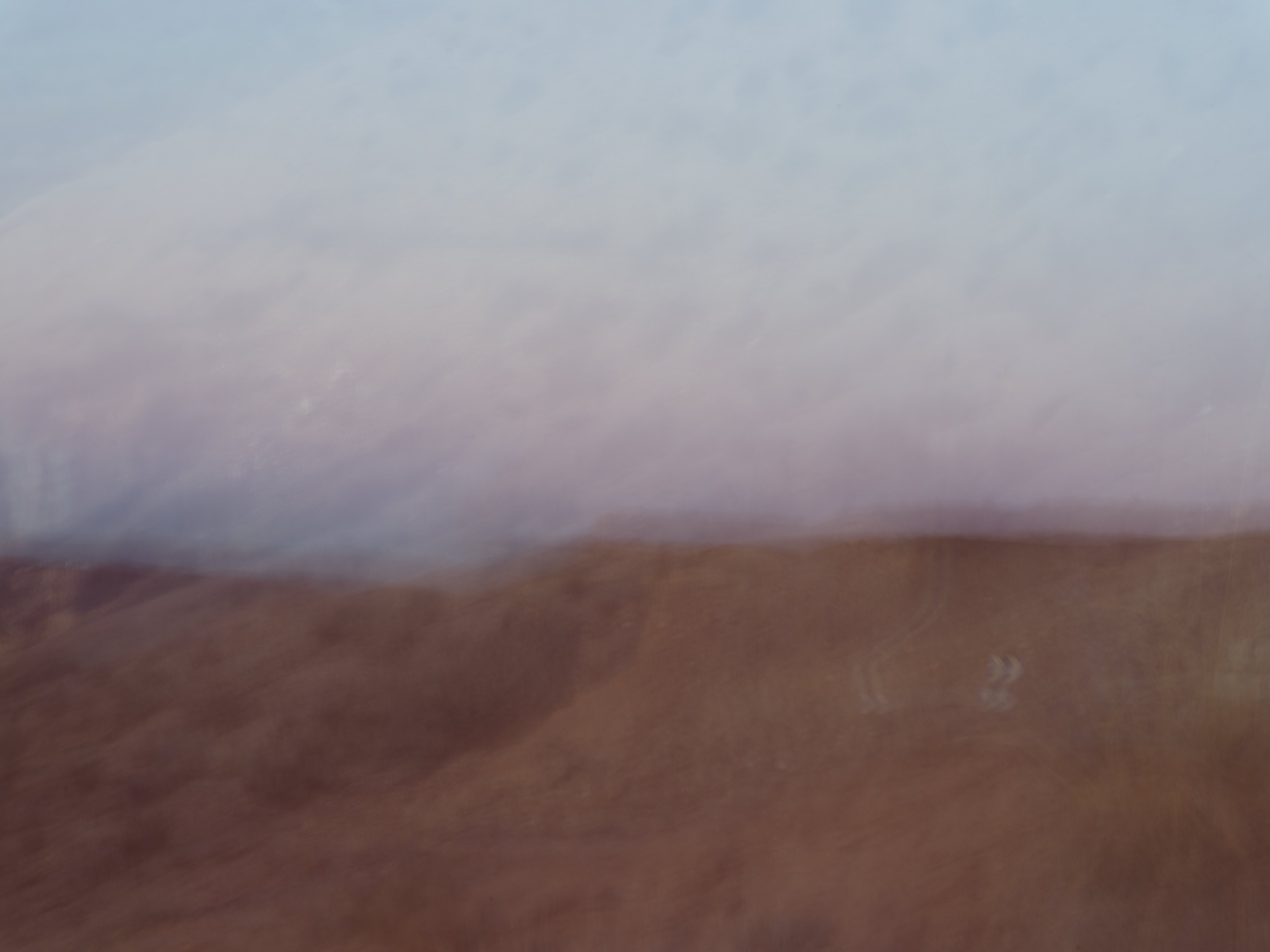 La même démarche, retournée vers le paysage. Le mouvement de l'appareil grave le lieu plutôt qu'il ne le représente.