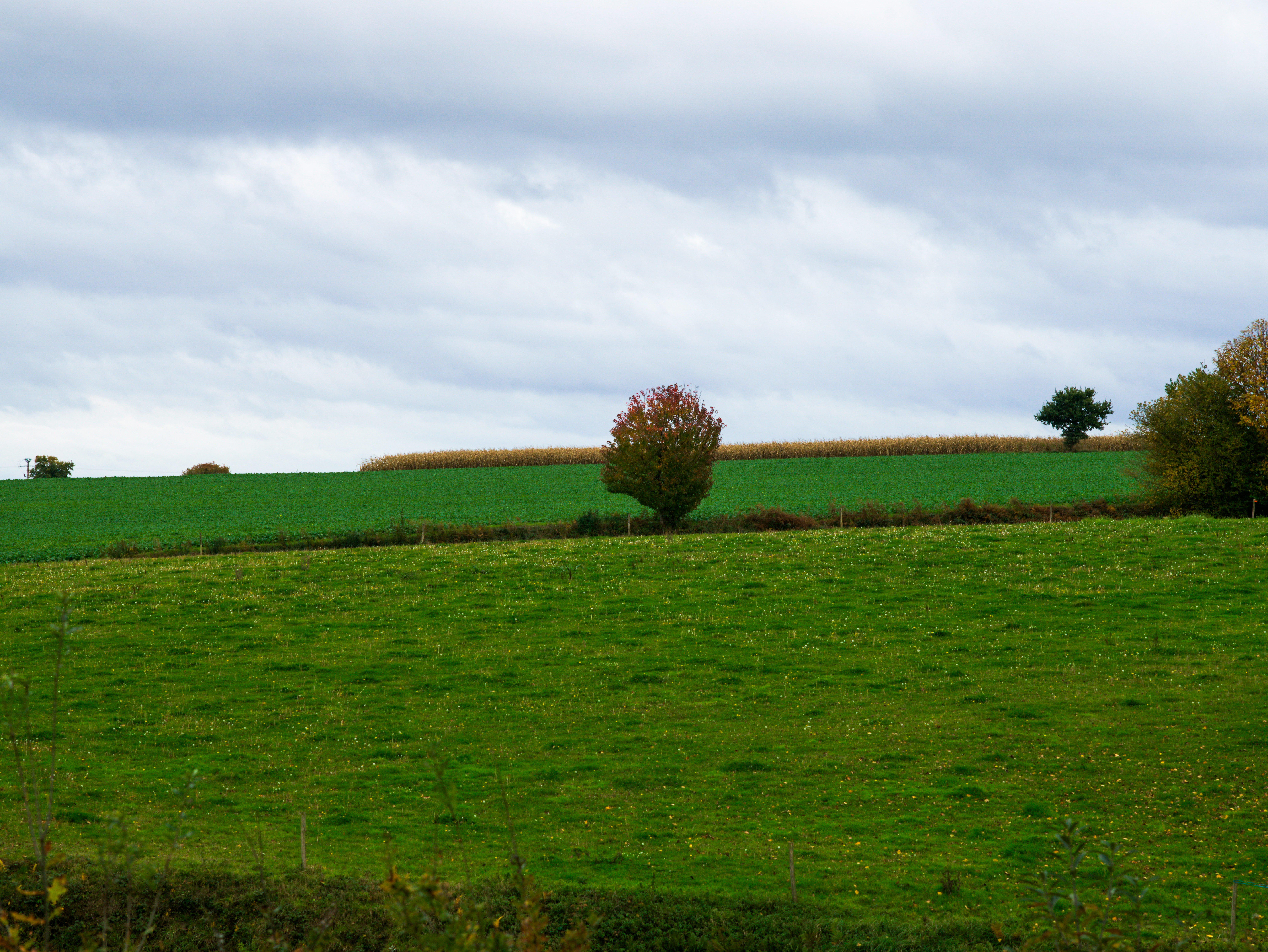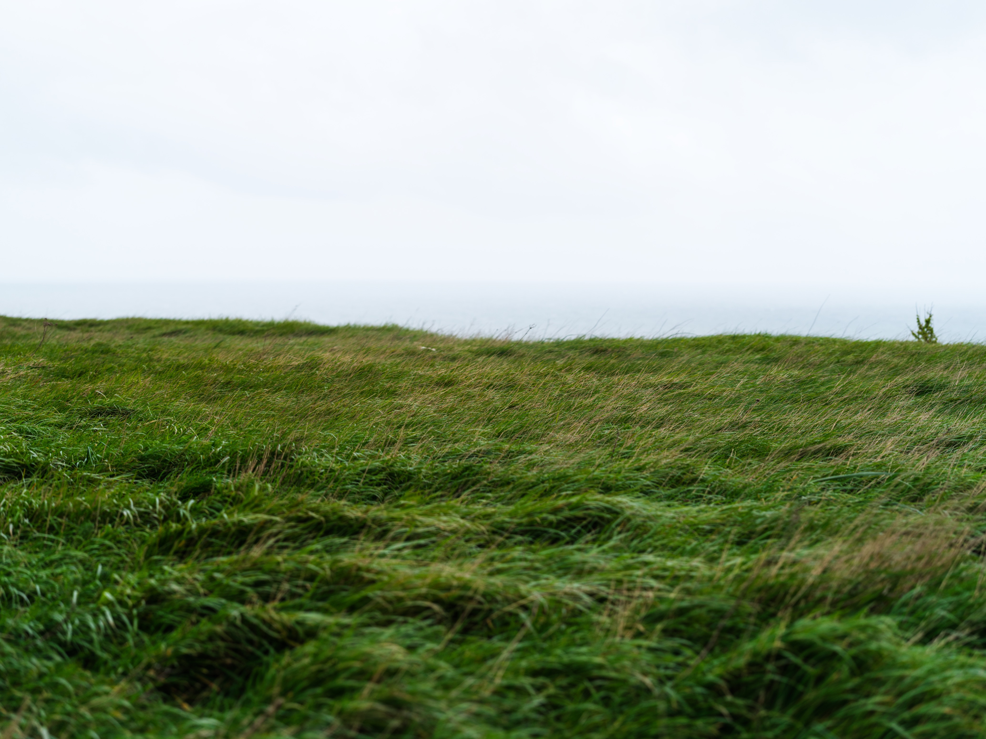 Revers de La matière du temps — ici le paysage est net, présent, précis. Un vert atlantique qui n'a rien de luxuriant : celui du vent, du ciel bas, de la côte bretonne en dehors des saisons.